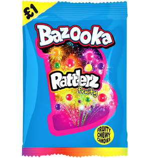 Bazooka Rattlerz Fruity Chewy Candies come in a convenient 100g share bag, perfect for enjoying a burst of fruity flavor anytime. These chewy candies offer a satisfying texture and a variety of vibrant fruit tastes, making them ideal for sharing or snacking on the go. Their compact packaging ensures freshness and easy portability, catering to both individual treats and group enjoyment.