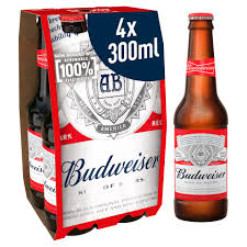 Budweiser Beer (4 x 300ml) offers a classic American lager experience in convenient 300ml bottles. Known for its balanced flavor and smooth finish, this pack of four is ideal for sharing or enjoying a refreshing drink at any occasion. Perfectly brewed to deliver consistent quality, Budweiser provides a crisp taste with subtle malt sweetness and a clean, refreshing aftertaste.