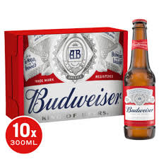Budweiser Lager comes in a convenient pack of 10 bottles, each containing 300ml of this classic American-style beer. Known for its crisp, balanced flavor and smooth finish, Budweiser offers a refreshing experience ideal for social gatherings or casual enjoyment. The 300ml size is perfect for portion control while maintaining the full taste profile that Budweiser is celebrated for. This pack ensures you have enough supply for multiple occasions without compromising on quality.
