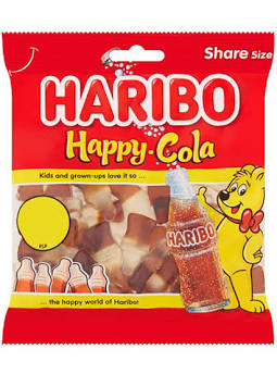 Haribo Happy Cola 154g offers a classic gummy candy experience shaped like miniature cola bottles. Each piece delivers a balanced blend of sweet and tangy flavors, mimicking the taste of cola with a chewy texture. Perfect for sharing or enjoying as a nostalgic treat, this 154g pack provides a convenient portion size for on-the-go snacking or adding a playful touch to any candy selection.