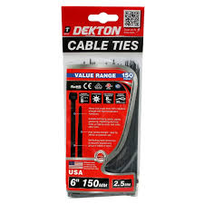 This pack of 150 Dekton black cable ties measures 2.5mm in width and 150mm in length, offering a dependable solution for cable management. Crafted for strength and flexibility, these ties securely bundle wires and cables, ensuring organized and safe installations. Their durable construction resists wear and environmental factors, making them suitable for both indoor and outdoor use. Perfect for professional electricians and technicians, these cable ties provide efficient, long-lasting performance in various applications.