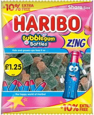 Haribo Bubblegum Bottles Zing 176g offer a unique twist on classic gummy candies with a tangy bubblegum flavor that delivers a refreshing zing. Each bottle-shaped gummy combines chewy texture with a burst of sweet and sour notes, making it an ideal treat for those seeking a flavorful and fun candy experience. Perfect for sharing or enjoying on the go, this 176g pack provides a satisfying balance of taste and texture for bubblegum lovers.